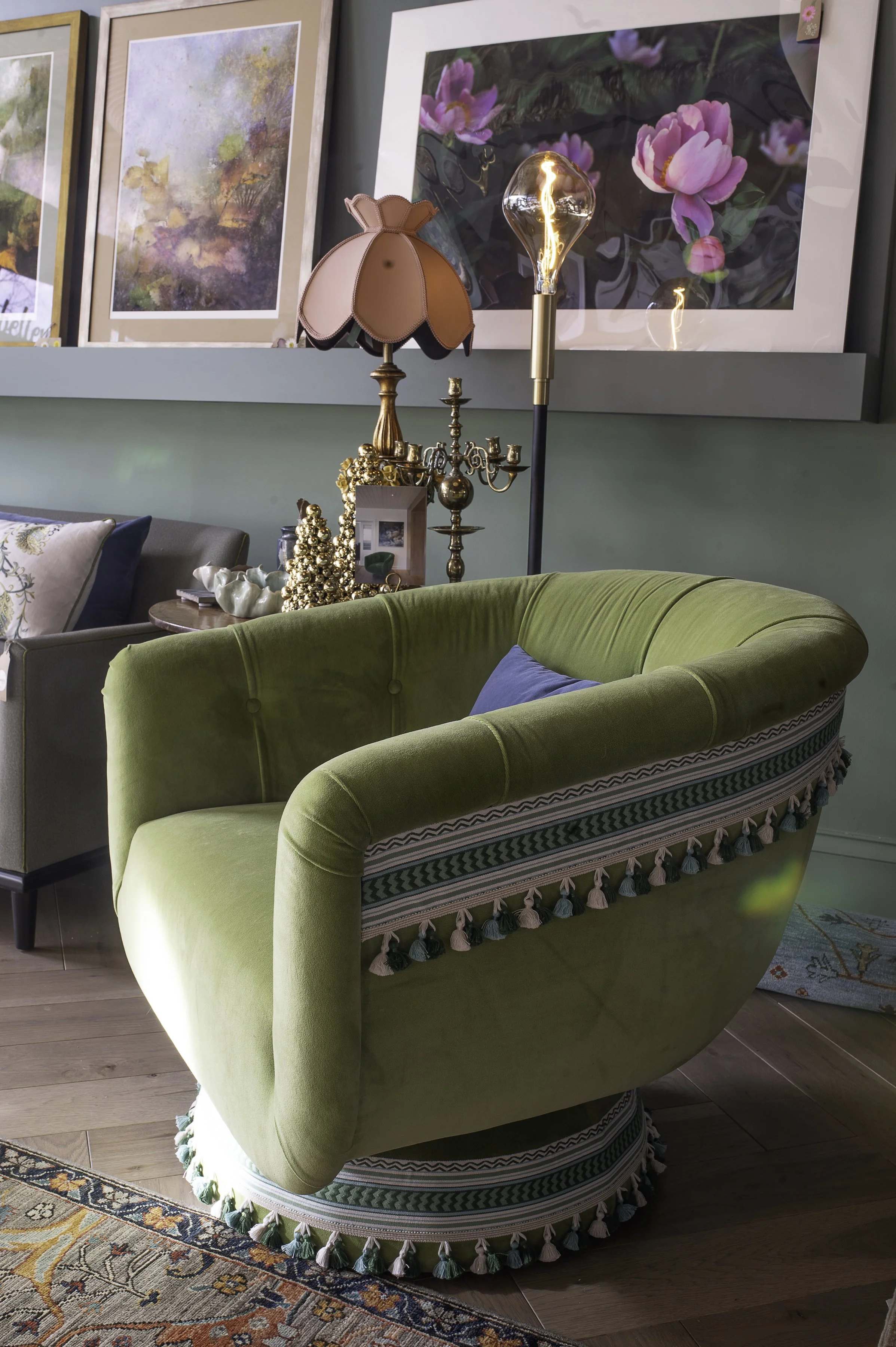Sofa: Softest poly you will every experience. Moss color.